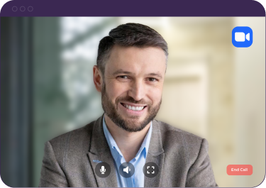 Every control lives inside the tool your users already have open — Adaptive Cards in Teams, Zoom Apps panels in Zoom, embedded controls in Google Meet. Video and voice quality stay native. Agents write into meeting chat in real time with links, summaries, and follow-up actions. No separate product to learn. Just a participant in the meeting, controlled through surfaces they already use.